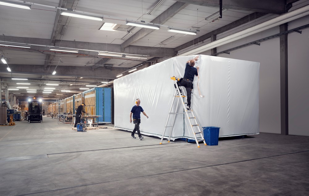 Keep the house module dry and clean throughout the entire construction process – from factory to building site. The solution is based on a strong, durable, and discreet covering film.