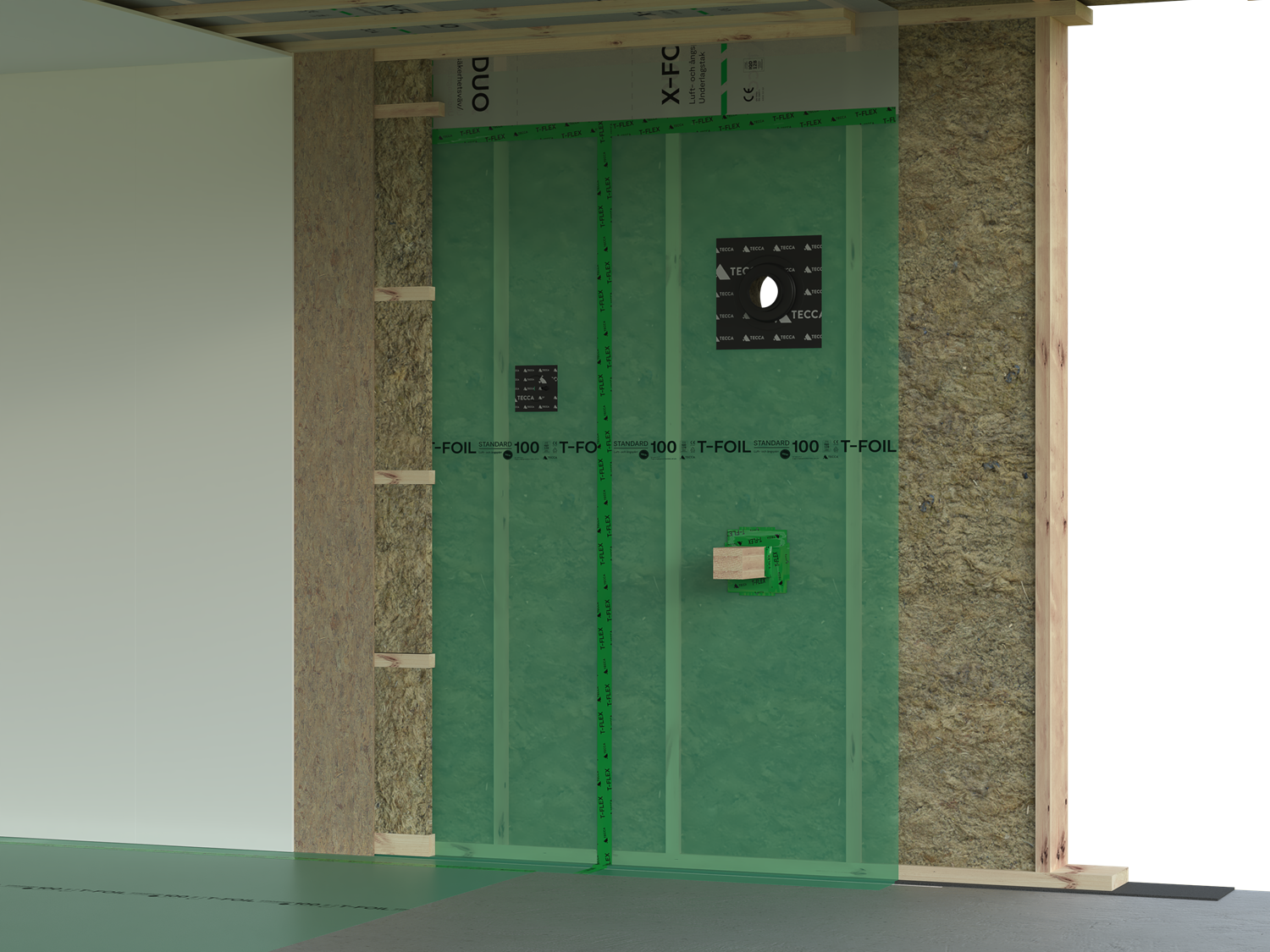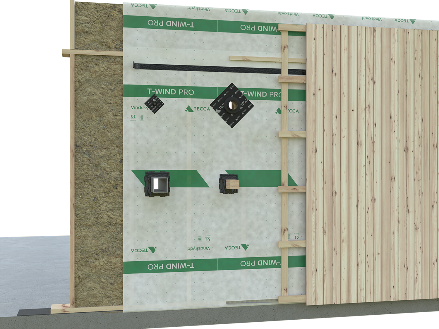 T-Wind is a wind barrier that forms the outer climate shield on the outside of the insulation in exterior wall constructions.