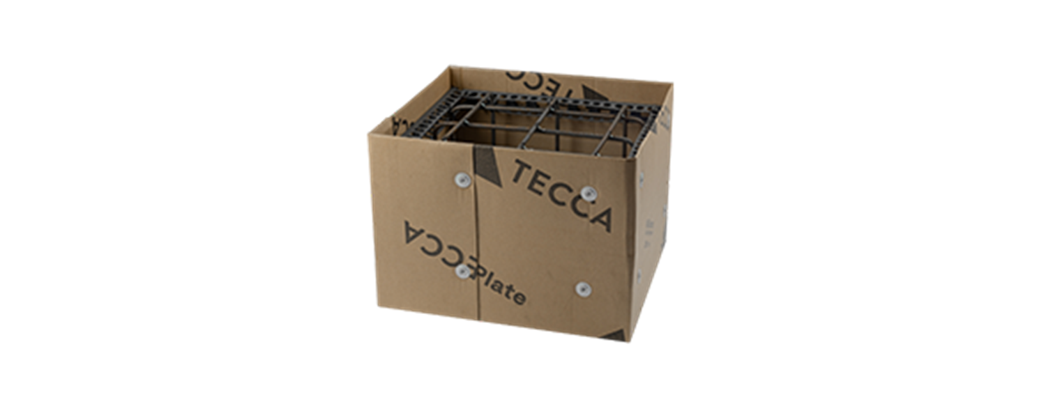 Made from special corrugated board and used as a mold for casting foundations. It replaces traditional plastic casting boards and has a low environmental impact thanks to bio-based and over 50% recycled material.